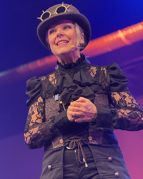 Sabine Schief ist Kabarettistin, Entertainerin und Herzhumoristin mit Leib und Seele. Seit über 30 Jahren begeistert sie mit ihrem schrägen Blick auf das Leben – und das im wahrsten Sinne des Wortes! Ihre Geschichten sind so knusprig wie eine echte schwäbische Brezel: außen bissig, innen herzlich, bestreut mit dem Salz des Lebens. Sie erzählt von Frauen, die auf Highheels feststecken, Männern, die niemals nach dem Weg fragen, und von ihrer wunderbar verrückten Großfamilie, die garantiert „was an der Waffel" hat. Mit Charme, Wortwitz und treffsicherer Beobachtungsgabe nimmt sie ihr Publikum mit auf eine Achterbahnfahrt durch die Tücken des Alltags – mal mit Tiefgang, mal herrlich überdreht, aber immer zum Schieflachen. Ob als Kabarettistin, Moderatorin oder Rednerin – wenn Schiefs Gosch erst mal läuft, gibt's kein Halten mehr. Schwäbisch, spritzig, und immer mit einer Portion Schokolade in der Tasche: Denn wer Schief heißt, kann nur Schräges tun.