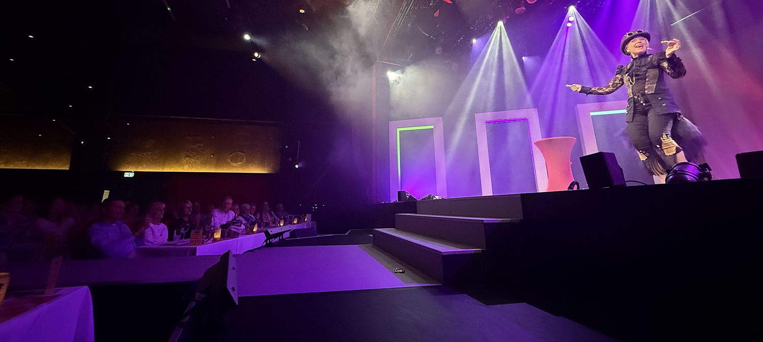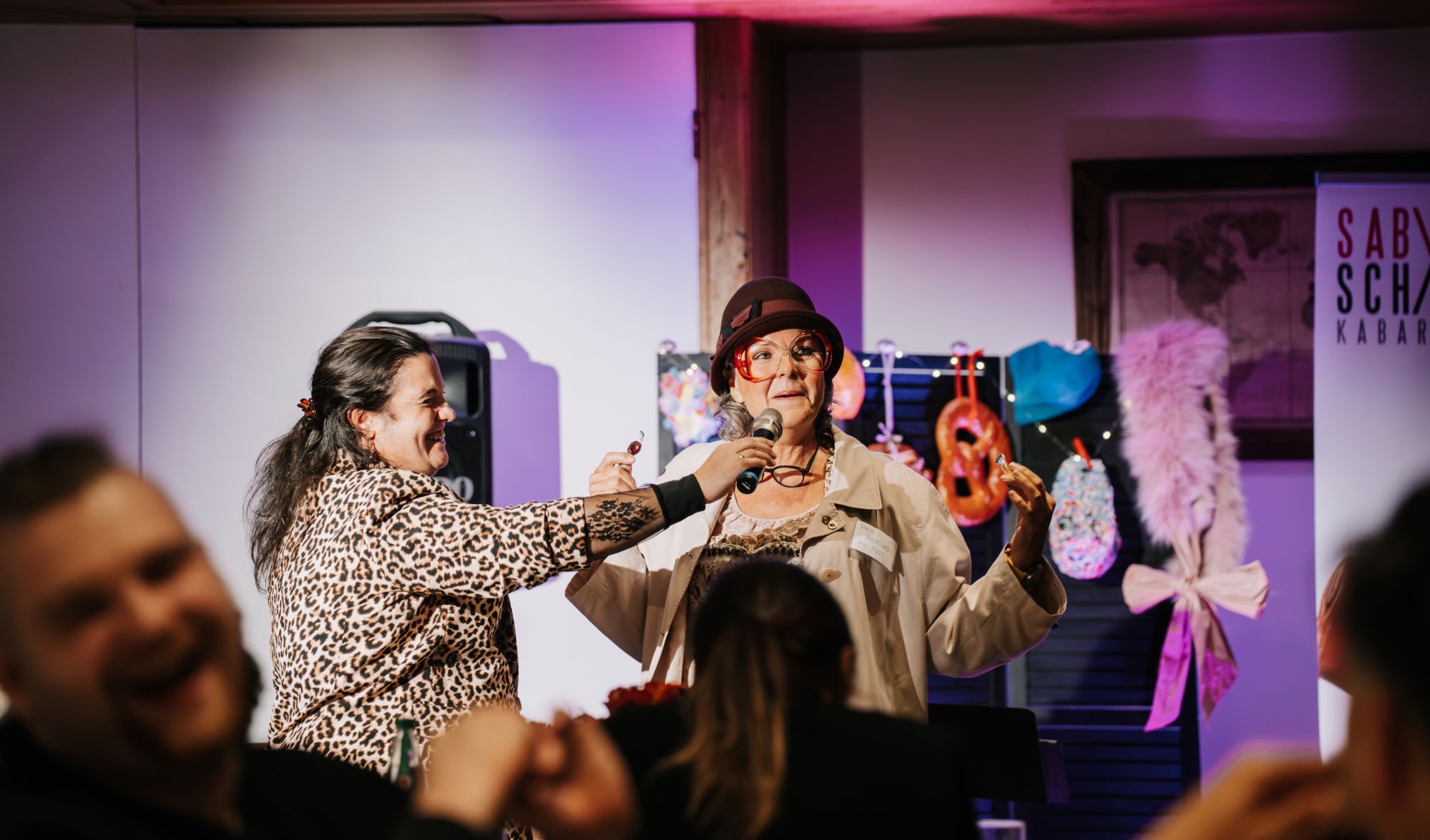 Ob Weihnachtsfeier, Firmenjubiläum oder Vereinsabend: Sabine sorgt mit mehreren Showblöcken dafür, dass zwischen den Gängen nicht nur gegessen, sondern auch Tränen gelacht wird.